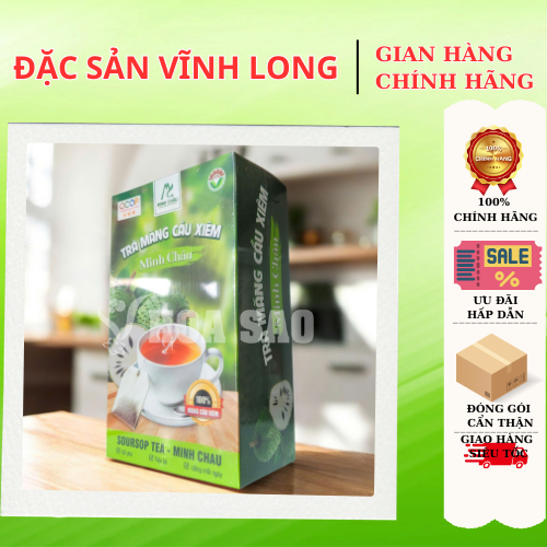 Trà Mãng Cầu Xiêm Minh Châu được chế biến từ 100% trái mãng cầu xiêm được trồng tại Trà Vinh. Sản phẩm được rang thủ công kết hợp với công nghệ sấy hiện đại giữ trọn hương vị tự nhiên, thanh mát.